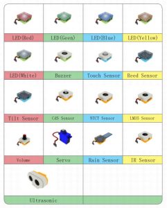 ส่วนประกอบ : เมนบอร์ดควบคุมการทำงาน อุปกรณ์เซนเซอร์อินพุตเอาต์พุต ซีดีซอฟต์แวร์ และคู่มือการเรียนรู้